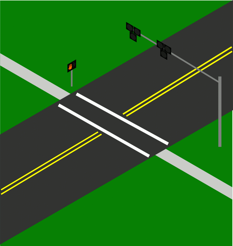 | Slow down, prepare to stop. Pedestrian has activated the push button. | Image