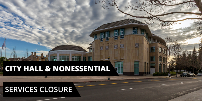 Hayward City Hall will be closed, and nonessential municipal services will be paused Friday, Jul. 04