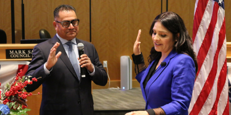 Councilmember Mark Salinas took the oath as Mayor and Planning Commissioner Julie Roche and